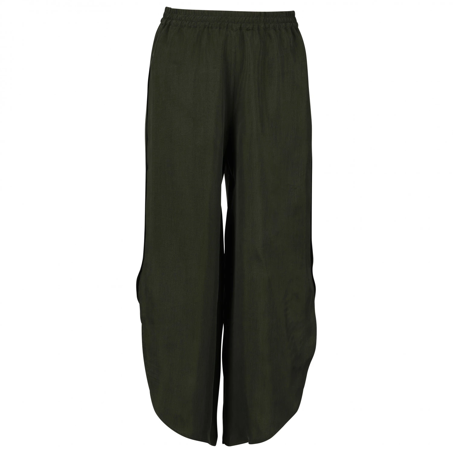 Das glatte Material fühlt sich an wie Seide und der weite Schnitt sorgt für Bewegungsfreiheit und einen hohen Wohlfühlfaktor. Der elastische Hüftbund sitzt perfekt und die schräg geschnittenen Beinabschlüsse mit seitlichen Schlitzen machen die Women’s Tulum Pants zu einem echten Hingucker.