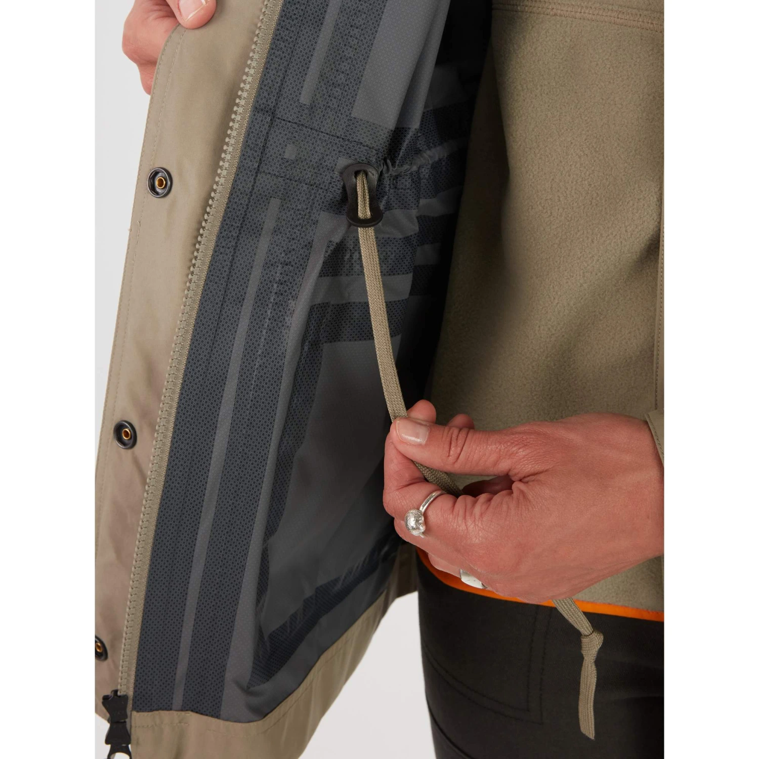 Noch mehr Komfort bei Wind und Wetter bieten dir die regulierbare Kapuze sowie die Druckknopf-Windschutzleiste am Front-RV. Die großen Taschen mit Druckknopfverschluss verleihen eine grandiose Optik und haben genug Stauraum für Smartphone, Portemonnaie und andere Gegenstände. Und damit der All-Weather Parka noch bequemer und modischer sitzt, verfügt er über einen Schnürzug zur Taillierung.