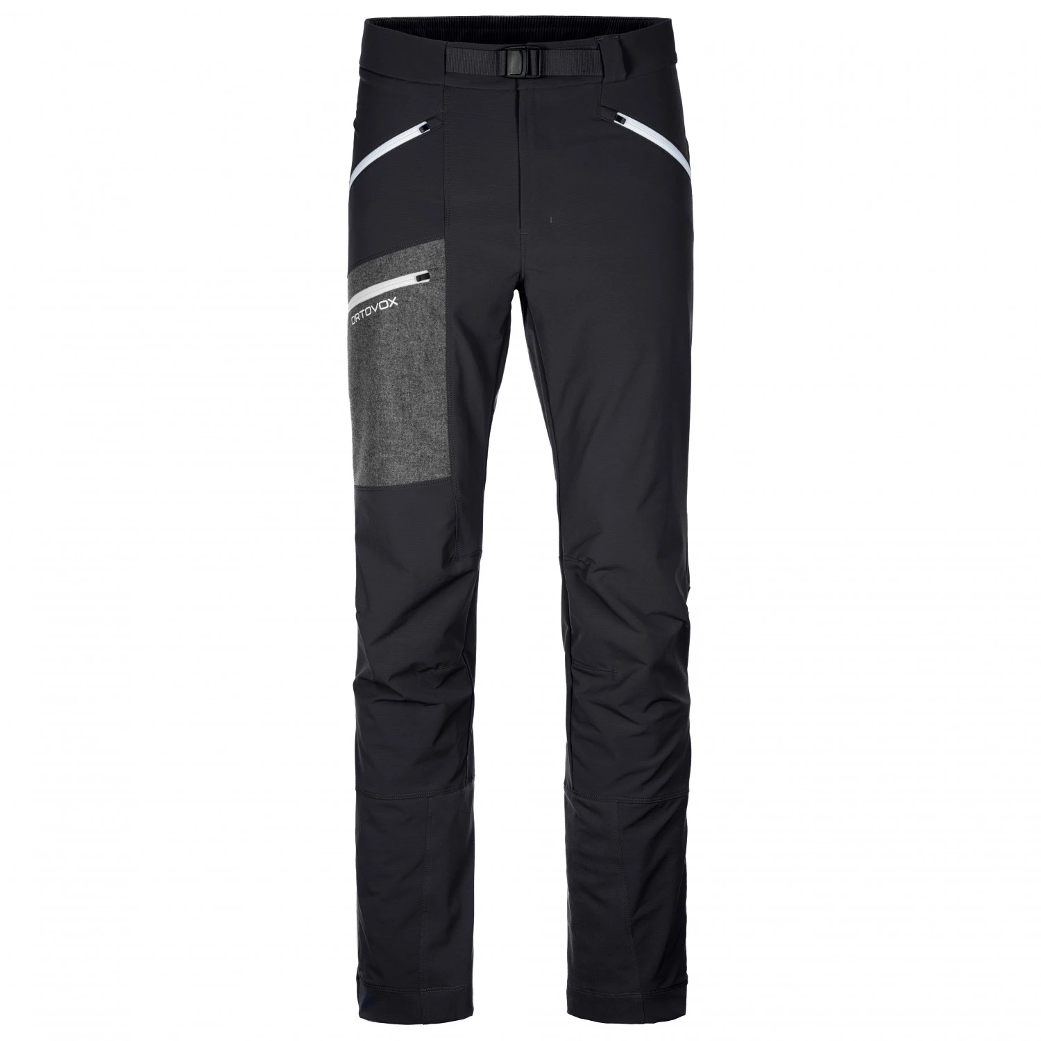 Ein vielseitiger Begleiter für Skitouren-Tage und Hochtouren: die Cevedale Pants von Ortovox! Das Zwei-Wege-Stretch-Material Merino Airsolation ist besonders abriebfest, wind- sowie wasserabweisend – und bietet dank der Rillen-Struktur auf der Innenseite eine angenehme Isolation. So überzeugt die Hose bei Wind- und Wetter, kalten Tagen, aber auch sonnigen Tagen. Und auch die optischen Details kommen nicht zu kurz: Am Oberschenkel befindet sich schließlich eine Kartentasche aus traditionellem Loden der österreichischen Firma Steiner. Zudem stechen die Kontrastfarben-Taschenreißverschlüsse und der Gürtel hervor.