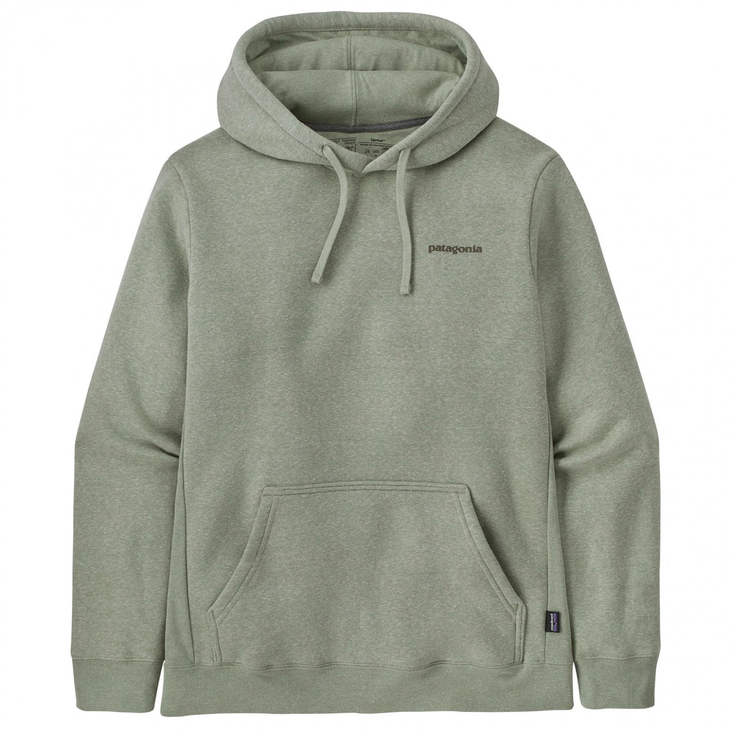Dieser klassische Hoody-Sweater von Patagonia kommt komplett aus recycelten Materialien gefertigt, sowohl der Polyester- als auch der Baumwollanteil sind aufgearbeitet. Die Kapuze lässt sich bei Bedarf über einen Kordelzug an Deine Bedürfnisse anpassen, und wenn es mal etwas frischer wird, kannst Du Dir die Hände in der vorne angebrachten Känguru-Tasche wärmen. Die natürlichen Stretch-Eigenschaften des Materials sorgen für angenehmen Tragekomfort, der von den Rippstrick-Einsätzen an den Ärmelbünden, dem Saum und den Seiten noch weiter verbessert wird. In den Übergangszeiten sowie an frischen Abenden und Morgen bist Du mit diesem Pullover warm, bequem und stylisch angezogen. Der Aufdruck des Boardshort Logo Uprisal Hoody besteht aus PVC- und Phtalat-freier Tinte, sodass von einer durch die Bank ressourcenschonenden und umweltfreundlichen Herstellung gesprochen werden kann.