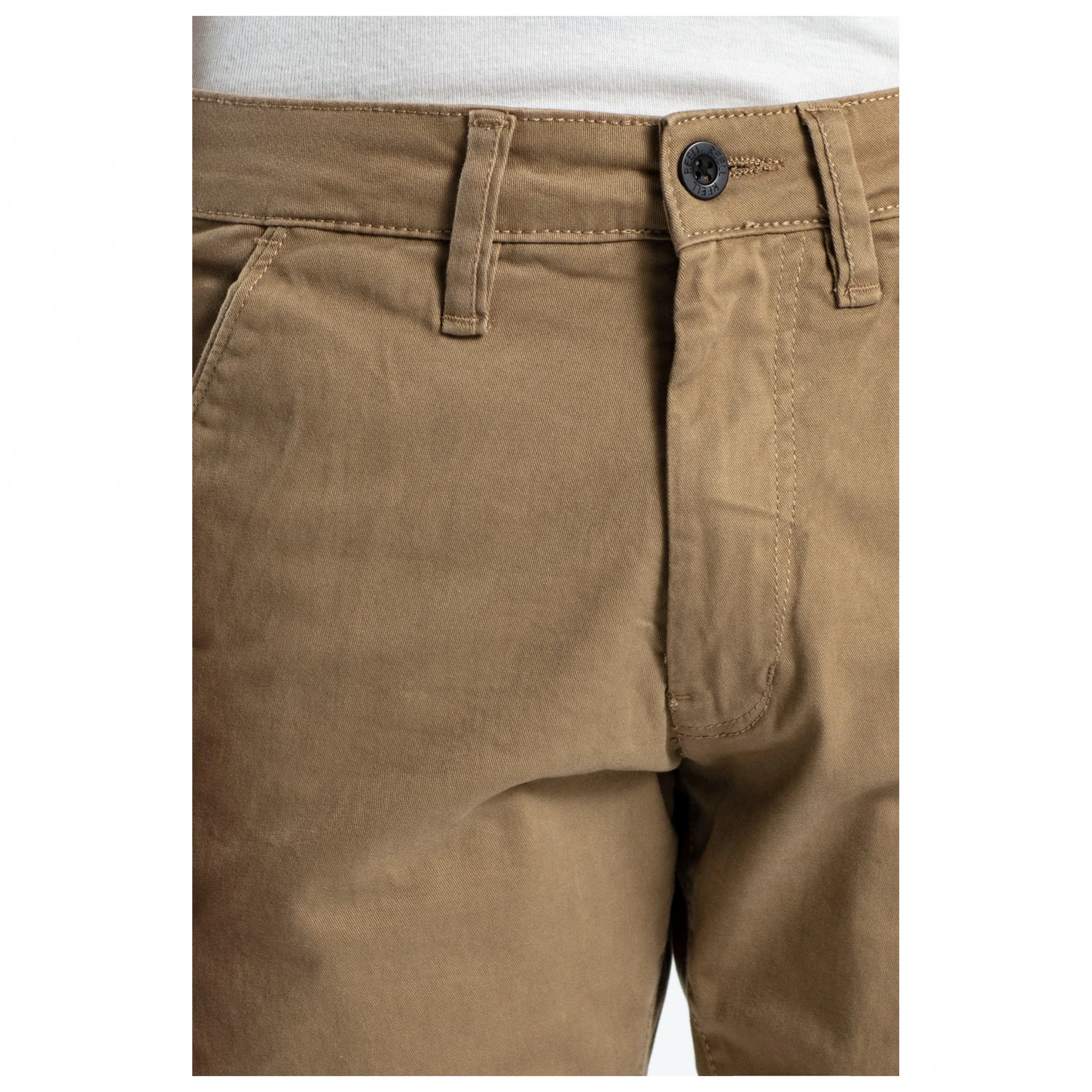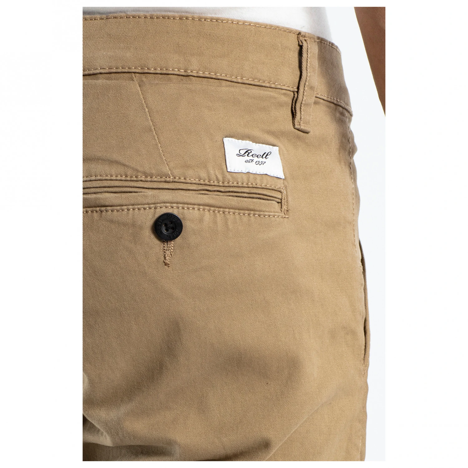 Ein Knopf verschließt die Hose und Gürtelschlaufen sorgen dafür, dass die Hose beim Tragen mit Gürtel an ihrer Stelle bleibt. Je zwei Taschen auf der Vorder- und Rückseite bieten Platz für das Nötigste. Die eng zulaufende Chino von Reell lässt sich mit ihren minimalistischen Details stylisch in Freizeit und Büro integrieren.